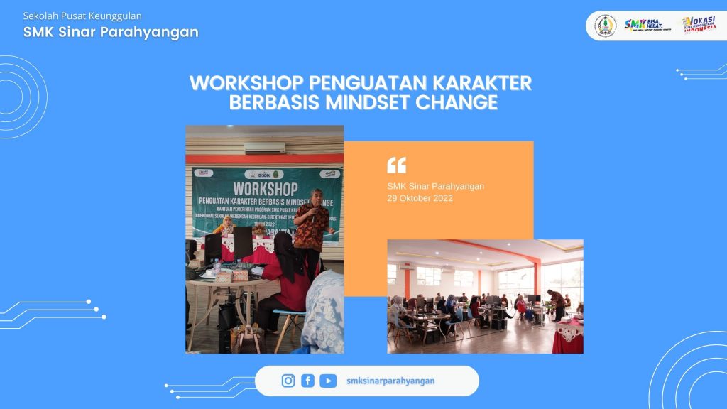 Workshop Penguatan Karakter Berbasis Mindset Change, bantuan pemerintah program SMK Pusat Keunggulan Direktorat Sekolah Menengah Kejuruan-Direktorat Jendral Pendidikan Vokasi tahun 2022 di SMK Sinar Parahyangan
